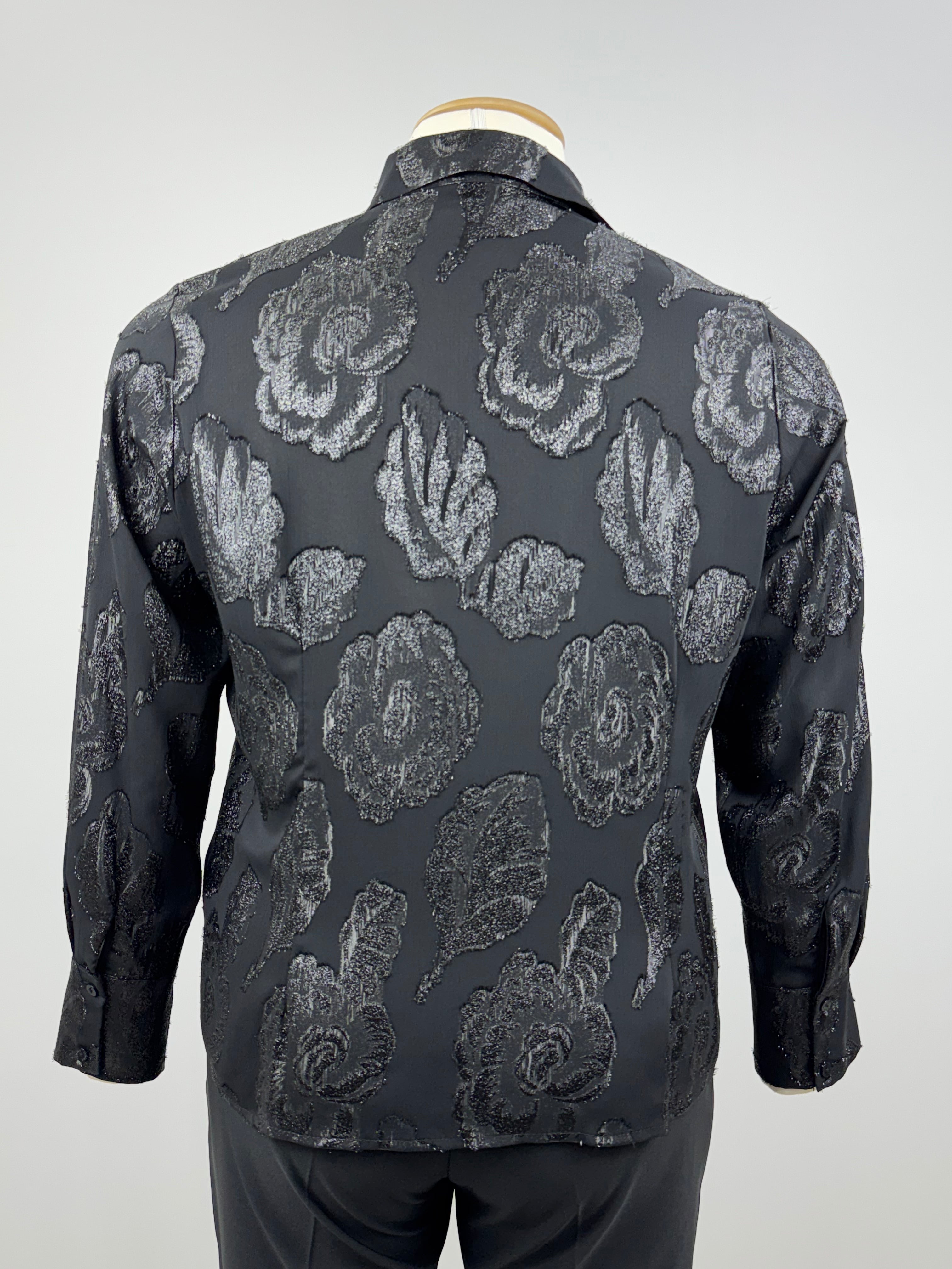 Simli gül desenli şifon gömlek