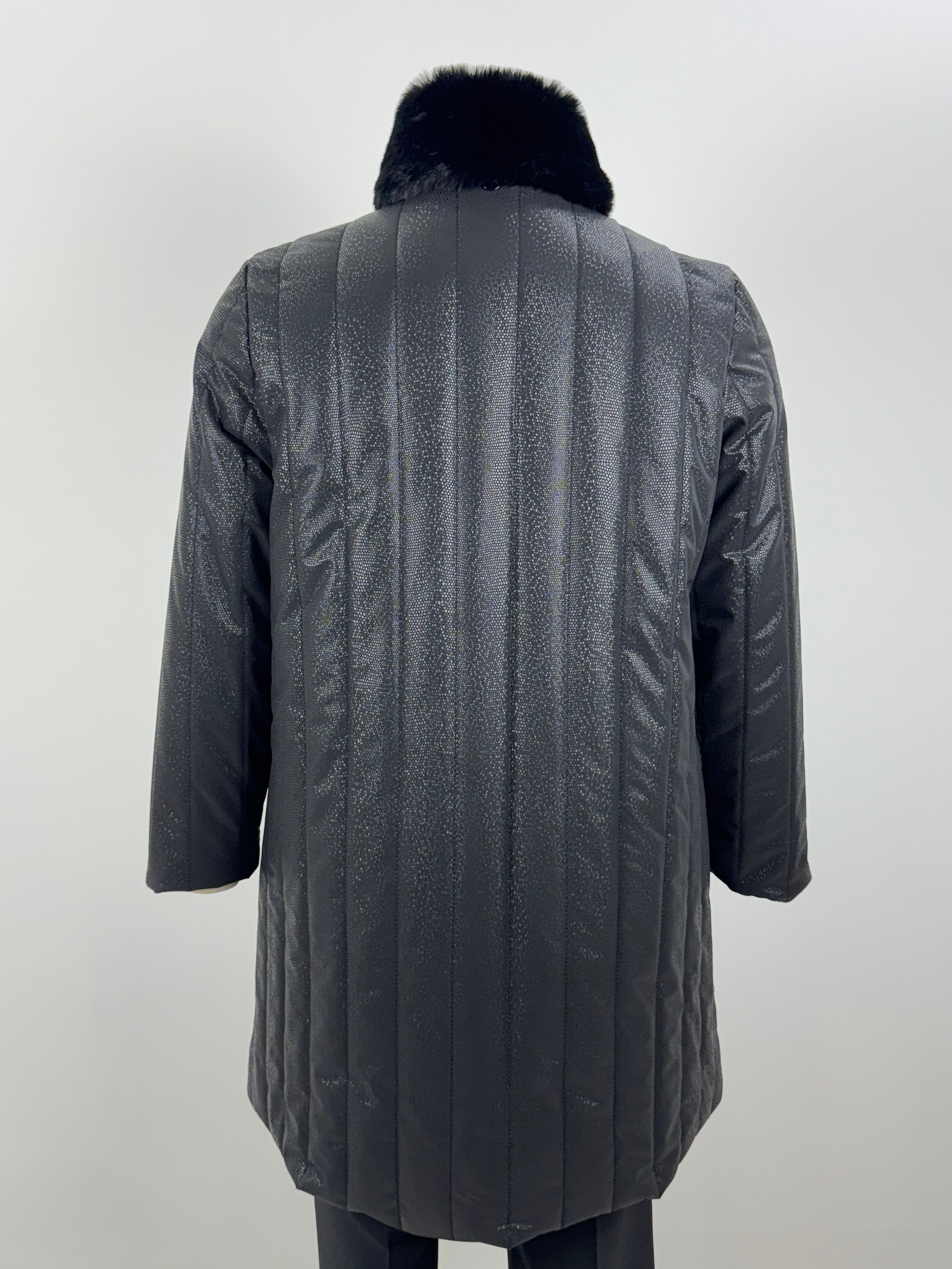 Su itici rüzgar geçirmez yakası kürk derili kaban.