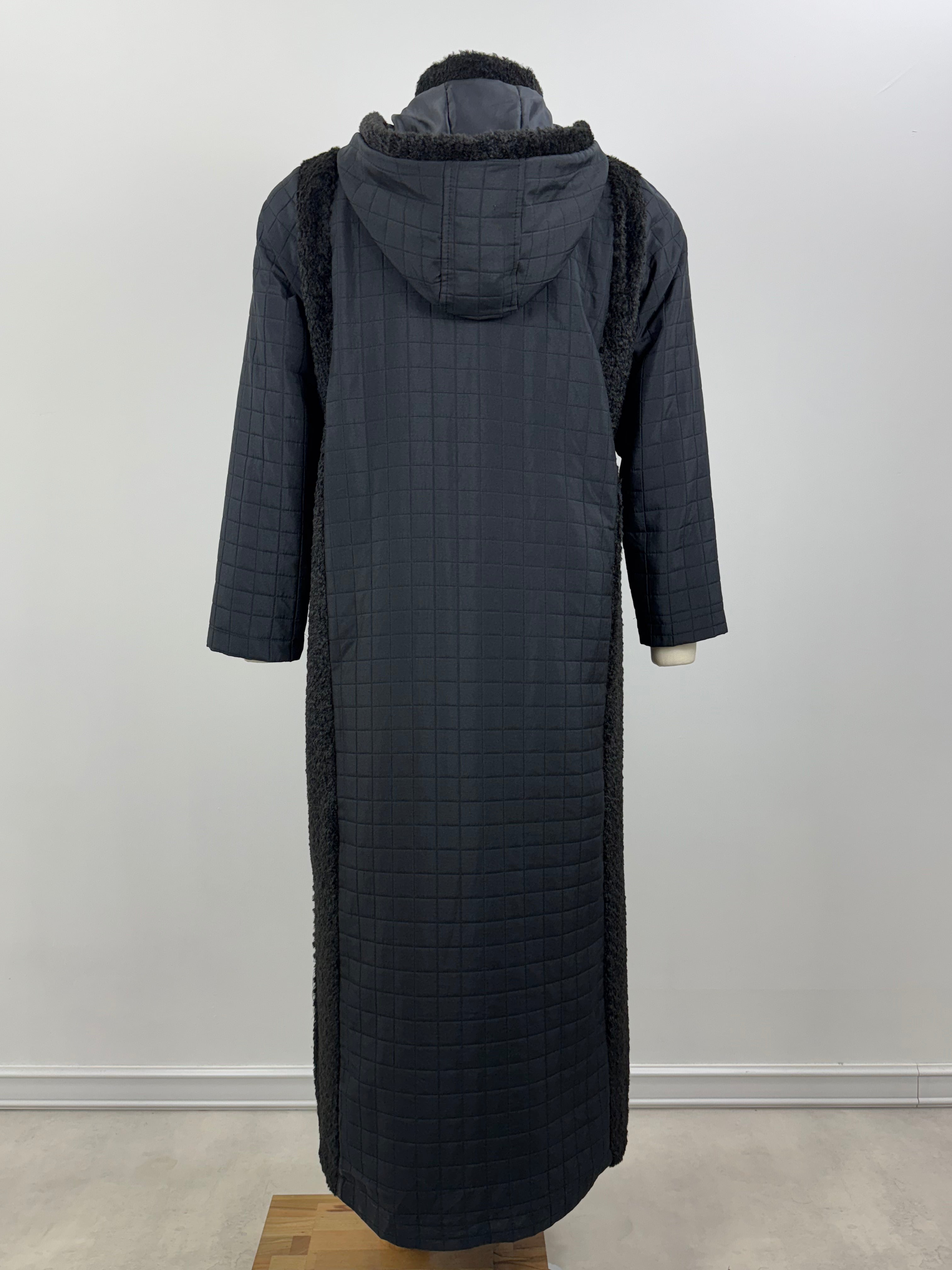 Peluşlu ince kapitone uzun kaban.