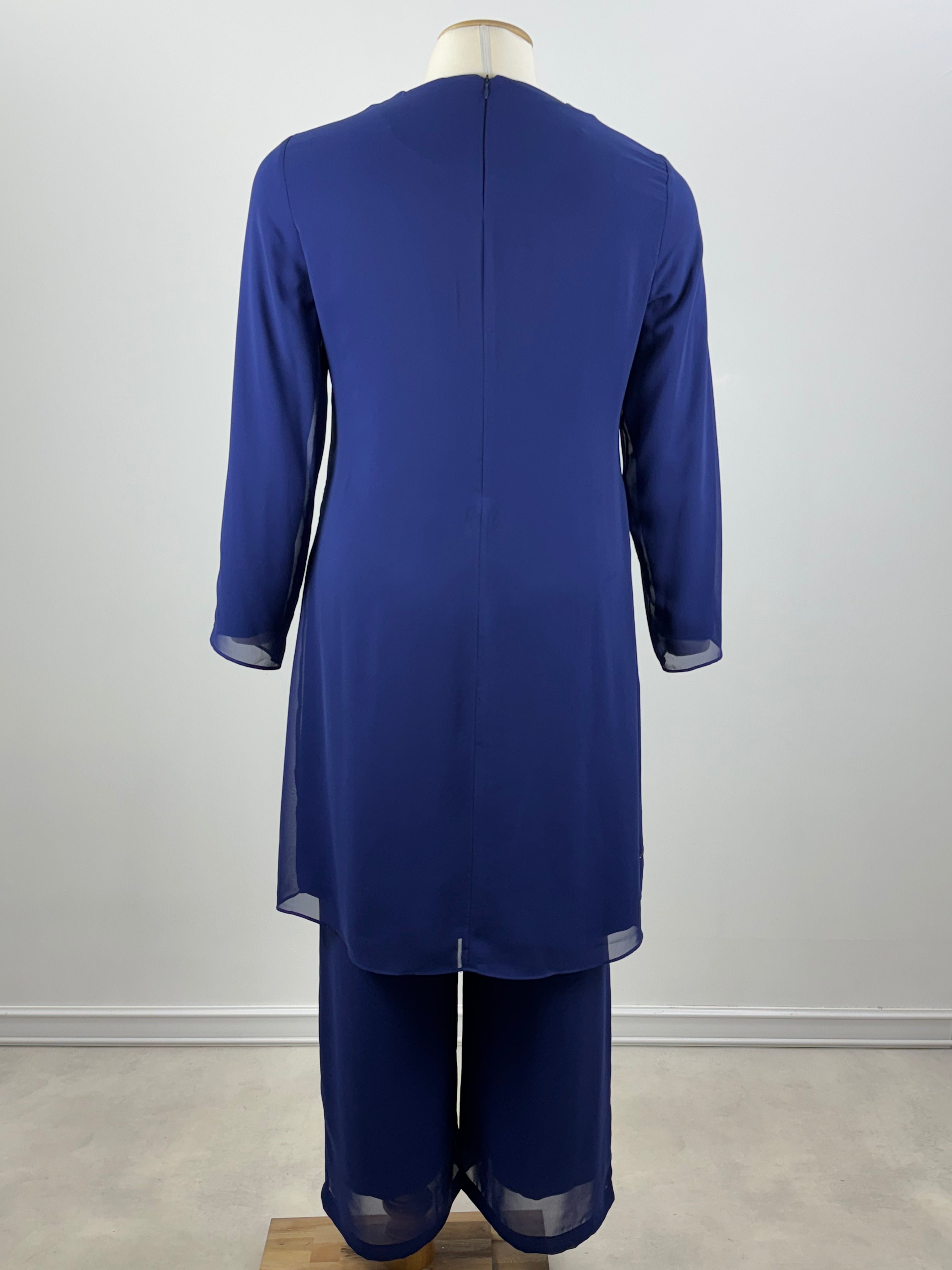 Akıcı olduğu için bir beden küçük gösterir ve ayrıca hatları göstermez. Suzana kumaş abiye pantolonlu takım.